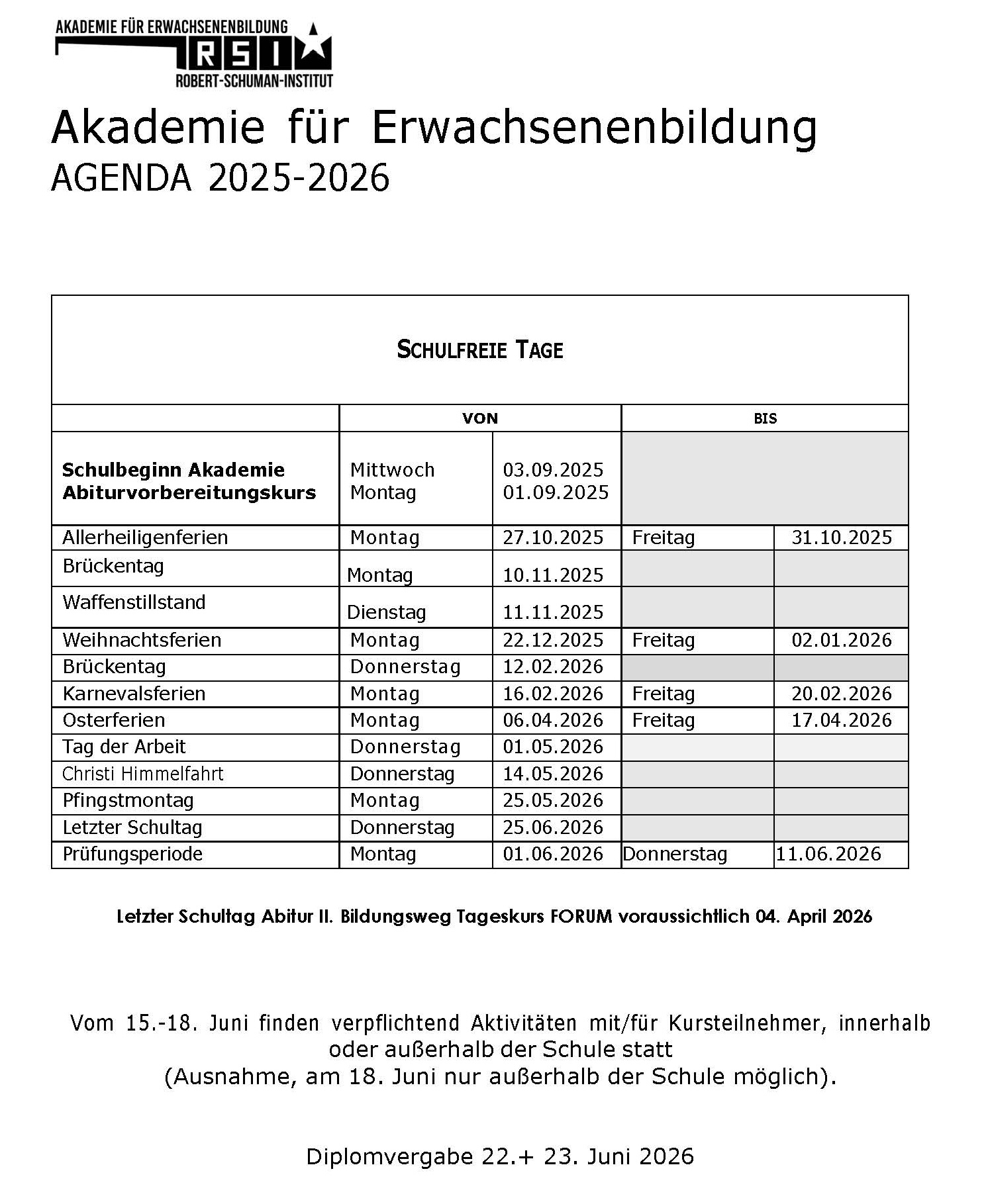 Einschreibungen Akademie